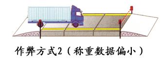 在稱重過程中,作弊車輛會存在不完全上磅或者多輛車同時上磅的情況,此系統(tǒng)可以輕松應(yīng)對這些問題。在車輛未完全上磅(如圖二、圖三所示),前輪或者后輪壓在外面,測量數(shù)據(jù)會比實際稱重重量偏小,在多輛車同時上磅的情況(如圖一所示)稱重數(shù)據(jù)會比正常數(shù)據(jù)偏高。多種作弊方式的出現(xiàn),為企業(yè)管理帶來了很大的困擾,若磅房只有一個過磅員,由于精力有限,過磅車輛多,過磅員受各種壓力和誘惑的影響,很難嚴(yán)格執(zhí)行過磅計量的標(biāo)準(zhǔn),若企業(yè)增派過磅員,又會給企業(yè)增加人力開支,并且作弊情況也無法從根本上控制,無人值守防作弊系統(tǒng)采用紅外定位方式,在磅前、后端都設(shè)有紅外對射器,紅外發(fā)射器不間斷發(fā)射紅外信號,如果車輛未正常上磅稱重,紅外線會被擋住,稱重軟件不予以過磅,LED屏幕上會提醒車輛未完全上磅信息。